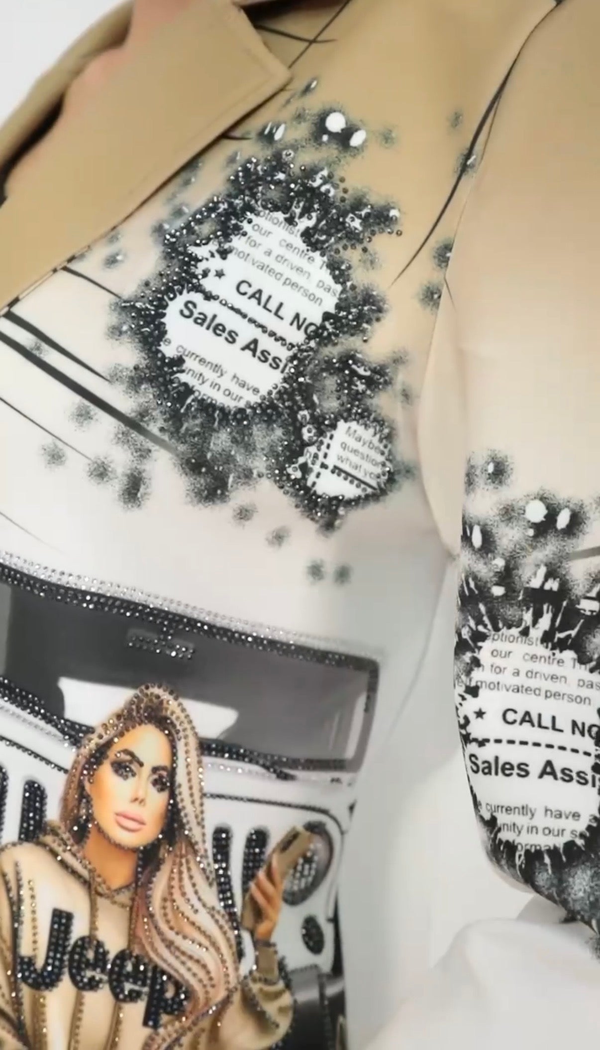 Make an entrance with this stunning fitted blazer, designed to elevate any look. Fully lined for a smooth, flattering fit, it features delicate rhinestone detailing that adds just the right touch of sparkle. The structured silhouette shapes beautifully to the body, giving a confident and elegant appearance. Perfect for evening events, parties, or whenever you want to shine with sophistication.